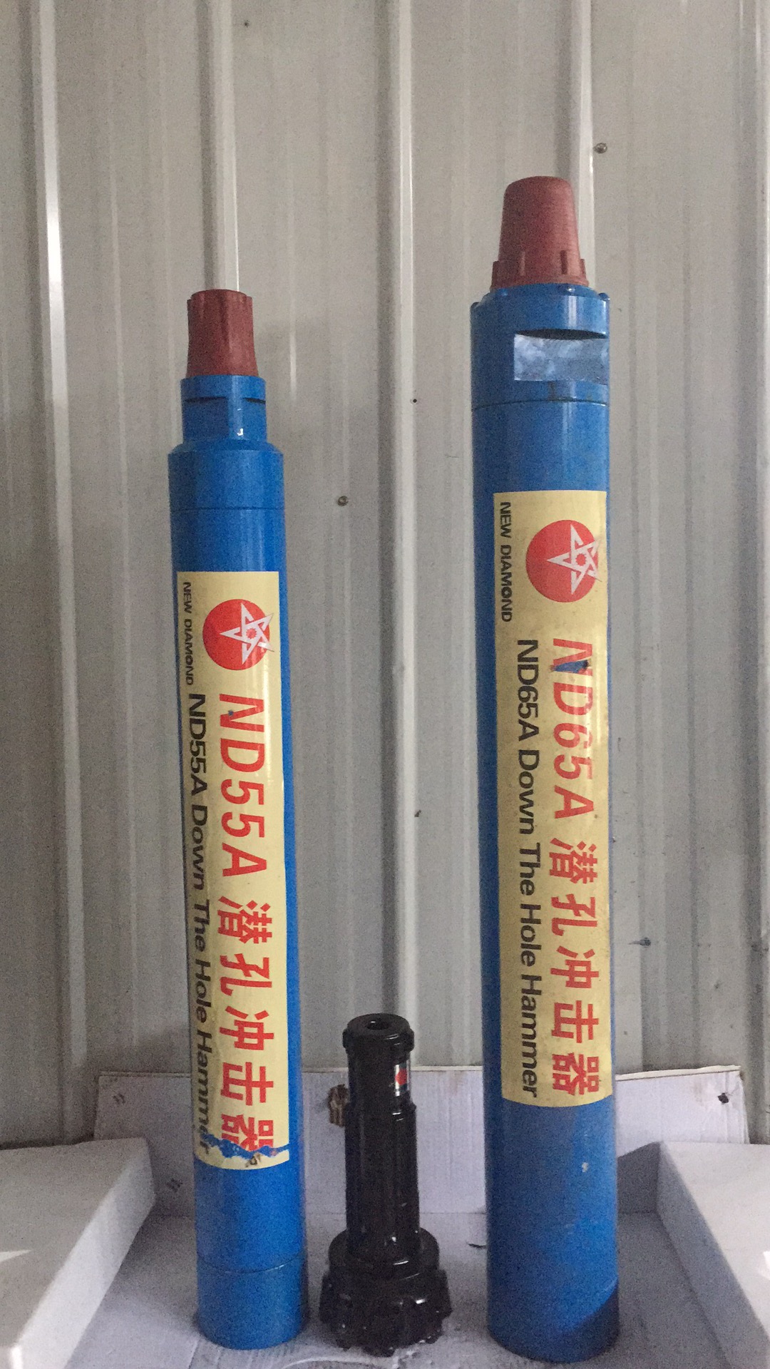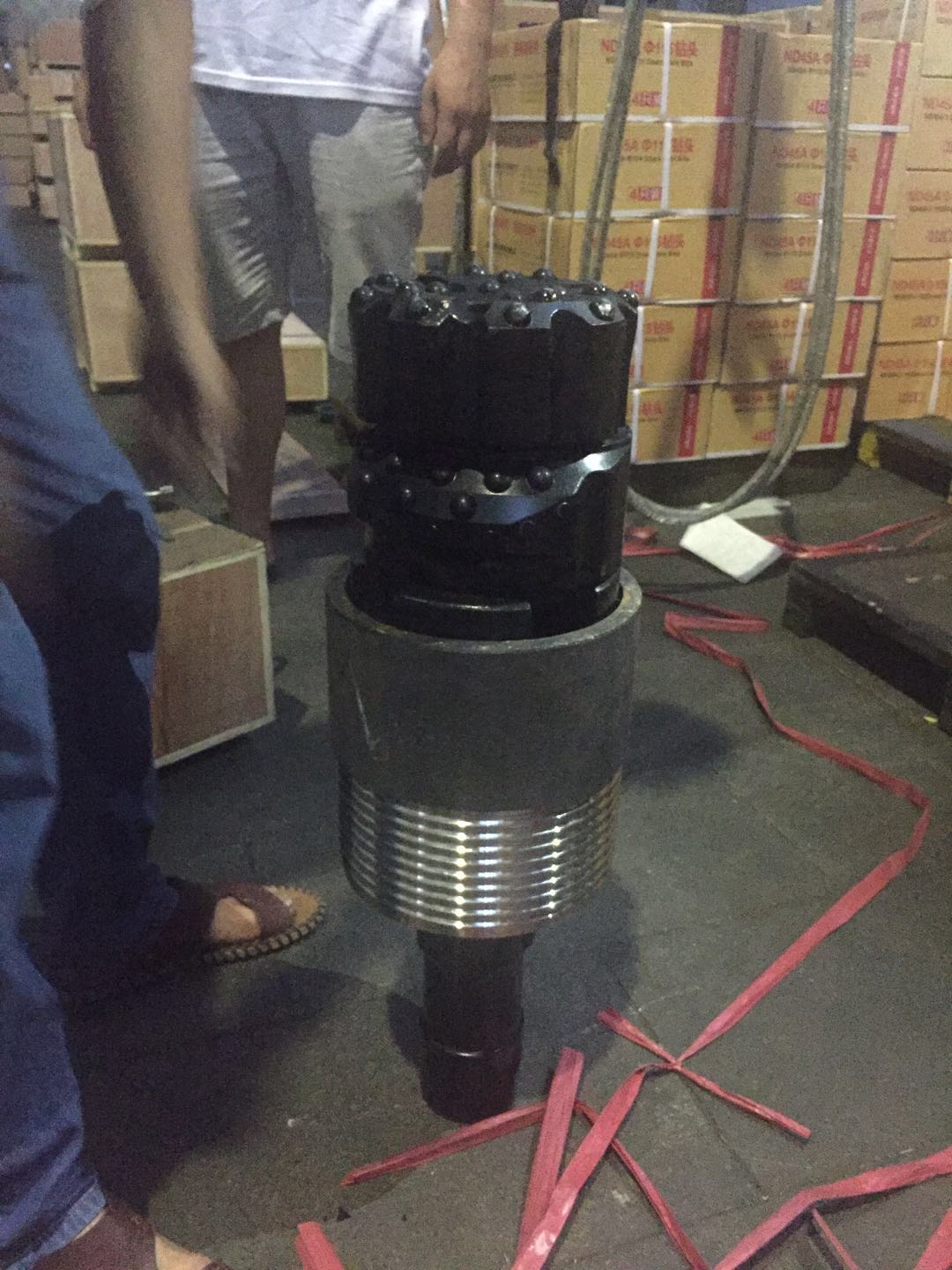潛孔鉆機(jī)在施工中使用的沖擊器與鉆頭。