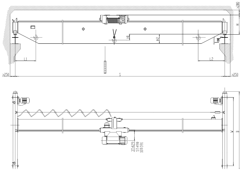 LDP型電動單梁起重機(jī)主要尺寸圖紙: