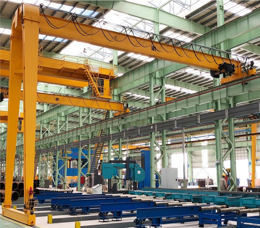 QD型通用橋式起重機(jī),起重機(jī)依靠沿廠房行車梁上支承軌道方向的縱向移動(dòng)、小車的橫向移動(dòng)和吊鉤的升降來(lái)實(shí)現(xiàn)工作流程。常用起重量為5-200t(可定制更大起重量),工作級(jí)別為A5-A7級(jí),工作環(huán)境溫度為-25℃~40℃,禁止在易燃、易爆、腐蝕性介質(zhì)環(huán)境中使用。操縱方式有地面控制、操縱室控制、遙控三種形式供用戶選擇。